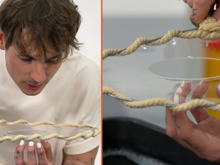 Pri tomto pokuse praskajú bubliny, ktorých súčasťou je cukor. Odporúčame to skúšať vonku alebo niekde na umývateľnej podlahe. Koberce to značne zalepí. 😊