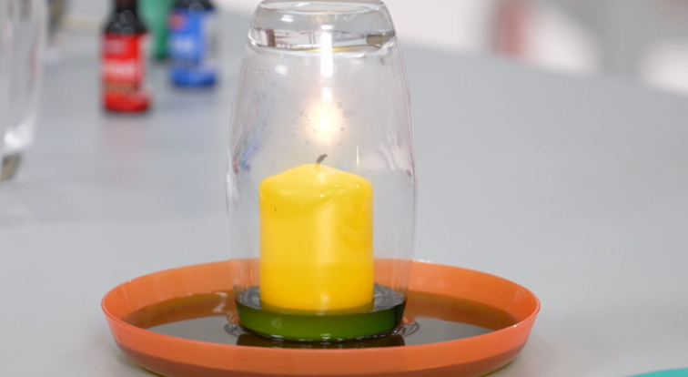 Sviečka ohrieva vzduch v pohári. Na to, aby horela, potrebuje kyslík. Horením sa však kyslík spotrebúva. Akonáhle sviečka spotrebuje všetok kyslík v pohári, zhasne. Po zhasnutí plameňa začne vzduch pod pohárom chladnúť, a preto sa zmenšuje jeho objem. Časť pohára sa teda vyplní vodou.