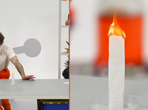 Na tanierik nalejeme trochu vody. Do vody nakvapkáme potravinárske farbivo. Do stredu tanierika položíme sviečku a zapálime ju. Na horiacu sviečku položíme pohár.