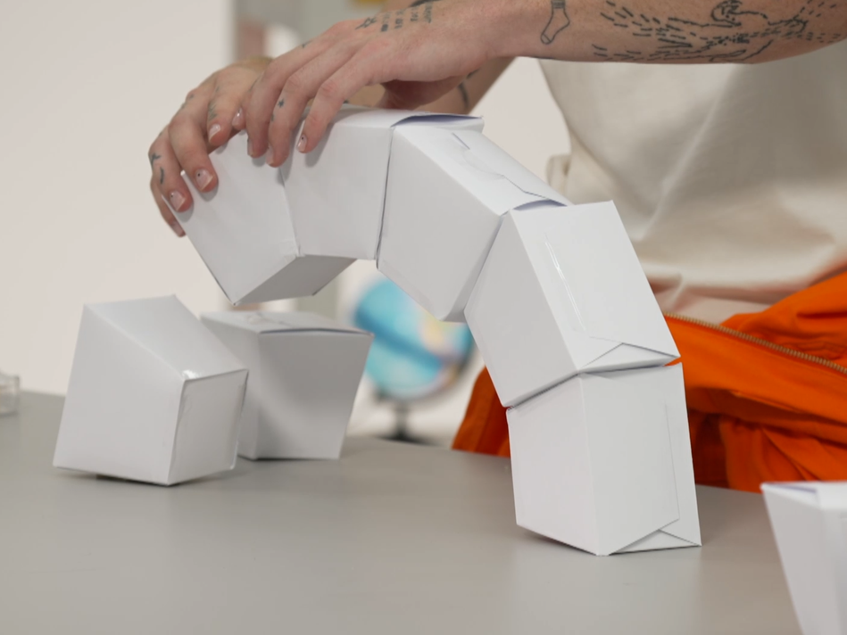 Pokúsime sa prepravky poukladať tak, aby vytvorili oblúk. Môžeme ich zlepiť, aby bol oblúk stabilnejší.